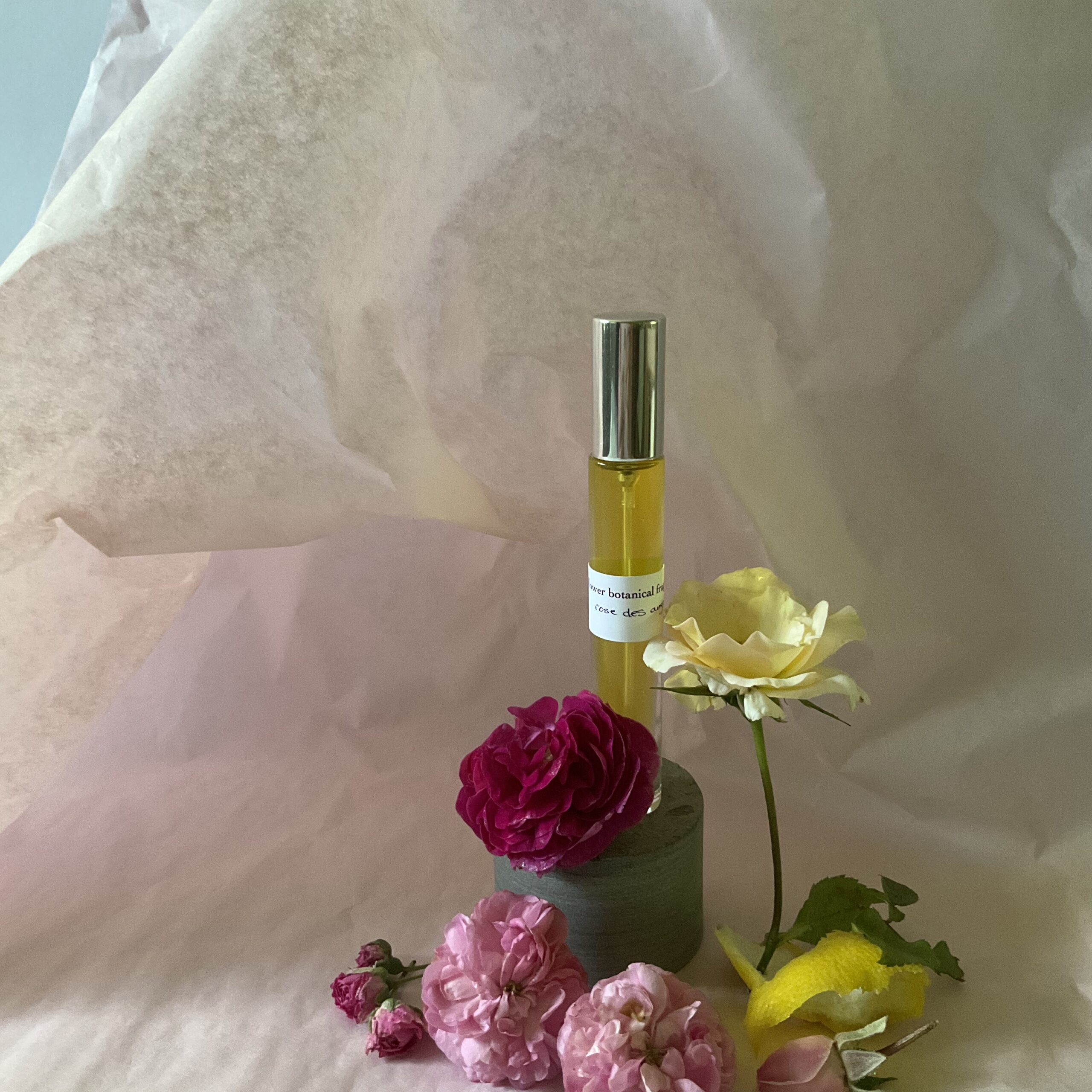 Fold into the wings of a delicate rose angel…..wings wafting ethereal roses with subtle lemon tones, sublime angelica and a green, barely bitter tear of galbanum.